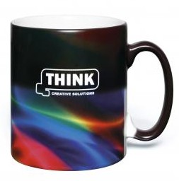 Full colour printed mug with a heat sensitive coating. When hot liquid is added this coating becomes transparent revealing the dye sublimation printed image underneath. As the mug cools the heat sensitive coating restores to its original colour.